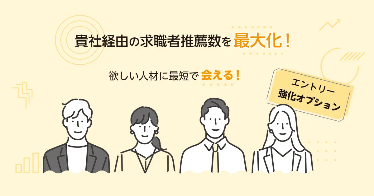 エントリー強化オプションはすぐに採用母集団形成を増やしたい、とお考えの企業様に向けたオプションサービスです。
